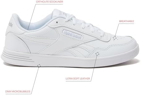 Step into style and comfort with the Reebok Court Advance women’s tennis shoes. Crafted with a premium leather upper, these casual sneakers for women ensure a snug fit and lasting durability. Innovative DMX Microbubbles in the midsole provide responsive cushioning for all-day wear in these comfortable shoes for women. The OrthoLite sockliner adds an extra layer of support, making these womens walking sneakers your go-to choice for any occasion. The lace closure ensures our womens white tennis shoes fit securely, while perforations on the toe box enhance breathability. Reebok is guided by the fundamental belief that LIFE IS NOT A SPECTATOR SPORT. No matter who you are, where you came from, how you move, or what you look like – everyone deserves to move freely.