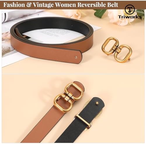 Reversible Leather Belt for Women with Gold Buckle Ladies Leather Belt for Jeans Pants