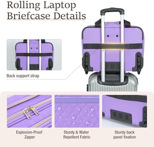 Rolling Laptop Bag, Laptop Briefcase on Wheels for Women Fits Up to 15.6Inch Computer Bags Water Resistant for Work Travel and Business (Purple)