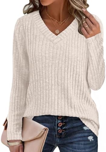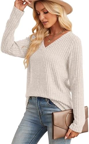 SAMPEEL Womens Long Sleeve Shirts V Neck Lightweight Sweaters Fall Fashion 2025