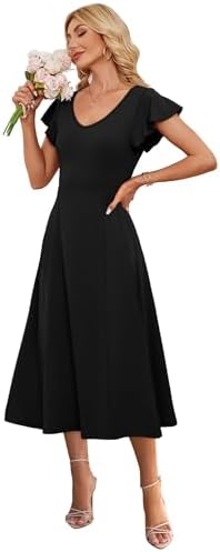 SAMPEEL Midi Summer Dresses for Women 2025 with Back Tie Ruffle Sleeve