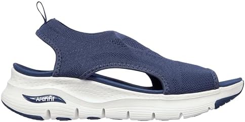 The Skechers Arch Fit – City Catch womens sandals combine supportive all-day comfort and breezy style. These slip-on sandals feature a breathable Stretch Fit engineered knit upper and cushioned Arch Fit footbed for sandals for women that feel great from morning to night. The sporty casual design has a 1 1/2-inch heel and flexible traction outsole.