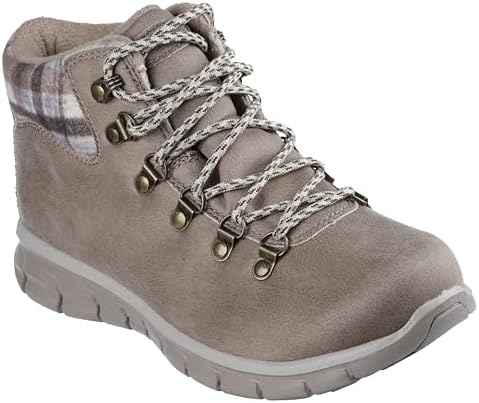 Chilly weather style meets sporty comfort in Skechers Synergy – Plaid Mood. This lace-up hiker style features a water-repellent microleather fabric upper with a plaid-sweater knit trim, faux-fur lining, cushioned Warm Tech Memory Foam insole and a slip-resistant outsole.