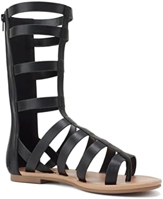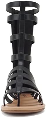 Soda MOXIE ~ Women Open Round Toe Mid-Calf Height Flat Gladiator Sandal