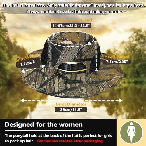 SMALL SIZE FOR WOMEN: This safari hat is designed to fit small-sized heads, with a circumference of 22″-22.5″ and, a head height of 2.5”. Measuring your head circumference before purchasing is important to ensure a proper fit.