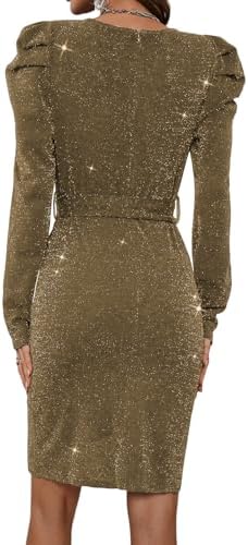 This sparkly womens elegant dress is classic long sleeve and wrap V neck design,makes you look chic and feminine.
