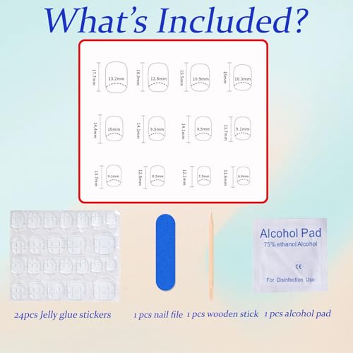 【Easy to use】No need to spend a lot of time and money in the nail salon, you only need to choose the right acrylic nails,stick the jelly glue we provide, press the false nails on the jelly glue for 30 seconds to get your favorite nail art.