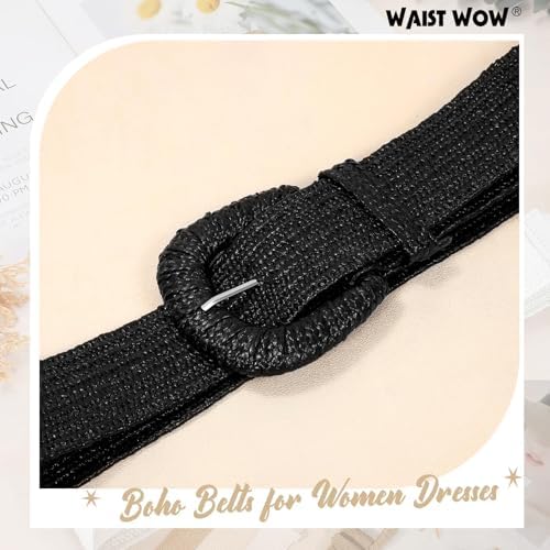 Straw Woven Elastic Belt for Women Stretchy Belts for Dress Fashion Boho Waist Belt Rattan Raffia Ladies Belts