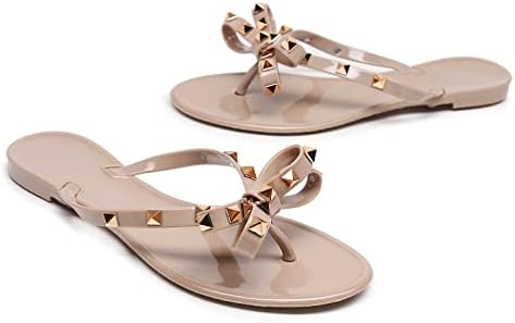 OMGard Studded Jelly Shoes for Womens Bow Flip Flops