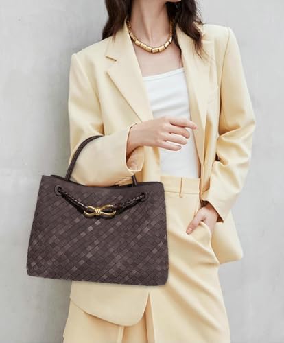 Suede Woven Tote Bag for Women PU Leather Hobo Bags Casual Crossbody Purse Shoulder Satchel Bag Top Handle Tote Handbag