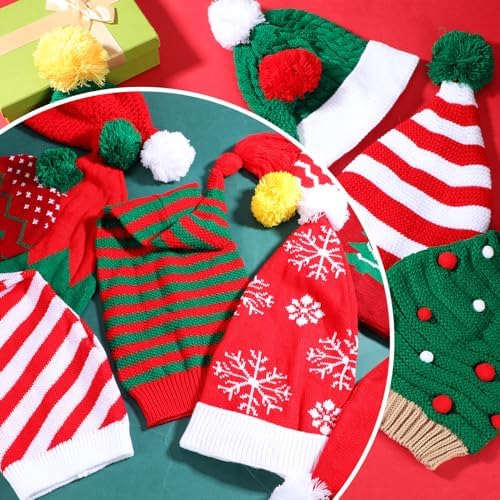 Suhine 24 Packs Christmas Santa Hats Xmas Elf Hats Warm Winter Striped Knitted Crochet Caps for Unisex Adult Men Women Christmas Holiday Winter Party Supply