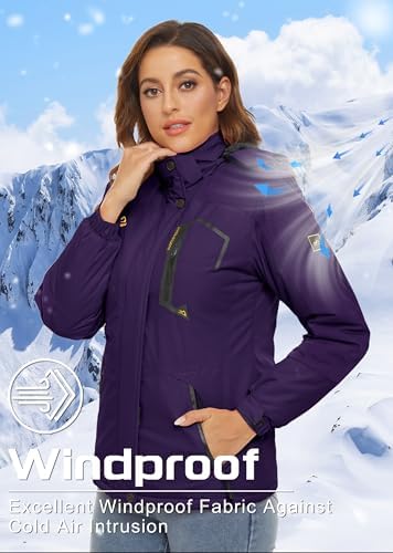 TACVASEN Women’s Winter Jacket Waterproof Ski Jackets Snow Coat Warm Fleece Rain Jacket with Hood Windbreaker