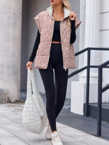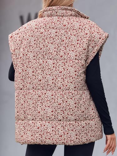 Tankaneo Womens Floral Oversized Puffer Vest Cap Sleeve Winter Warm Puffy Quilted Jackets Coat