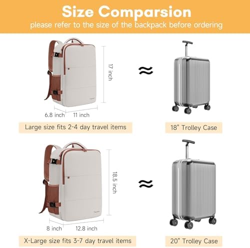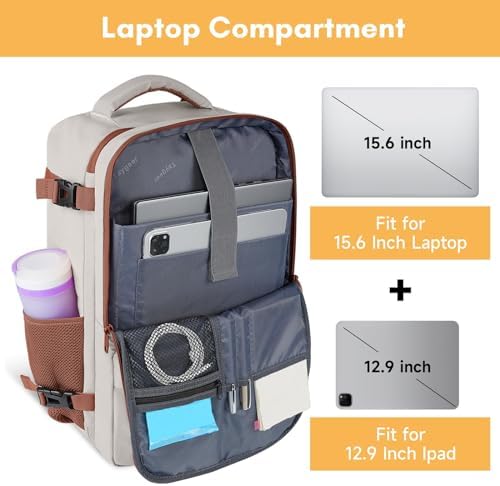 Taygeer Backpack for Women, College Backpack with Laptop Compartment & Shoe Pouch, 35l Travel Laptop Mochila Carry On Luggage, Airline Approved Personal Item Bag For Weekender Gym Hiking, Khaki White