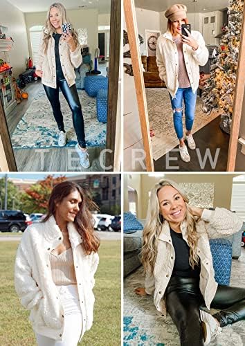 TECREW Womens Winter Sherpa Fleece Button Jacket Coat Loose Long Sleeve Outwear with Pockets