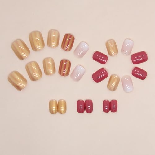 Thanksgiving Press on Nails Short Square Fake Nails Caramel Color Fall Nails with Glitter Designs RIICFDD Acrylic Nails Glossy False Nails for Women Girls 24Pcs
