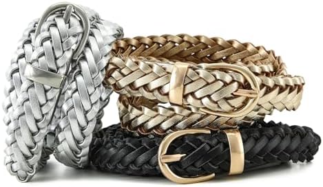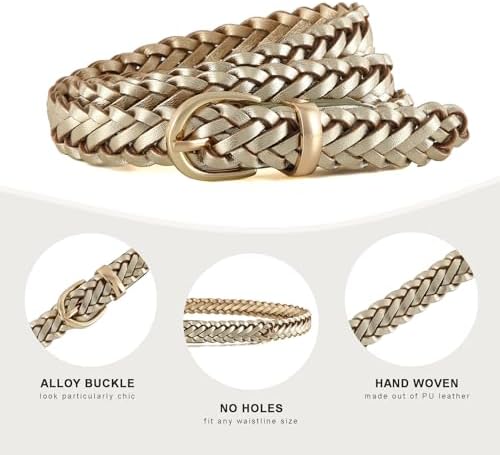 Thin Braided Belts for Women Classic Waist Belt Skinny Woven Strap for Jeans Pants Dress