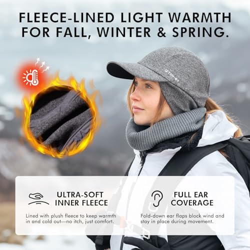TOP-EX M/L/XL Unisex Water-Repellent Baseball Cap with Ear Flap Ponytail Hole Reflective Winter Hat Fleece Lining Hat