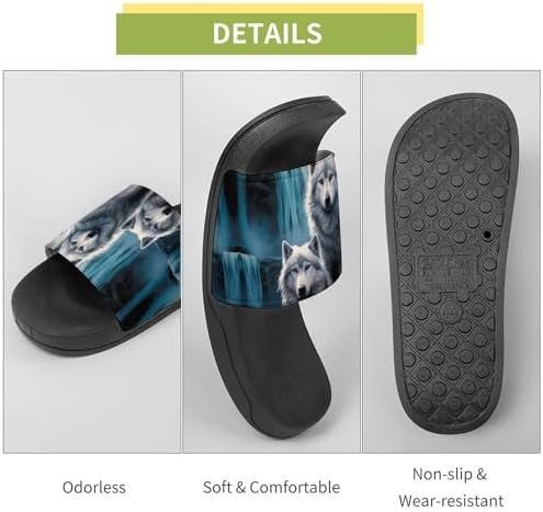 Two Wolfs on Falls House Sandals Non Slip Slippers Quick Drying Bathroom Shower Shoes for Women Men