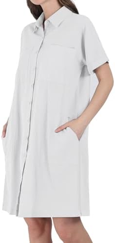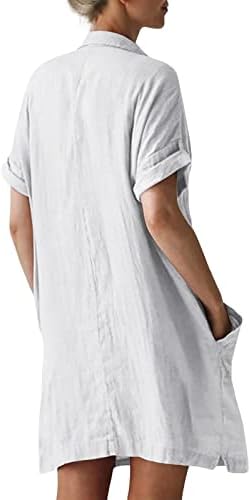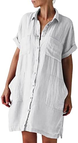 utcoco Womens Cotton Linen Button Down Shirt Dress Casual Loose Cuffed Short Sleeve Dresses with Pockets