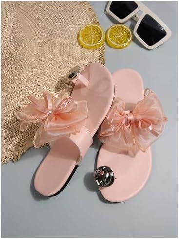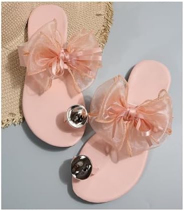 Verdusa Women’s Tulle Bow Sandals Summer Ring Toe Slip on Leather Flat Flower Sandals