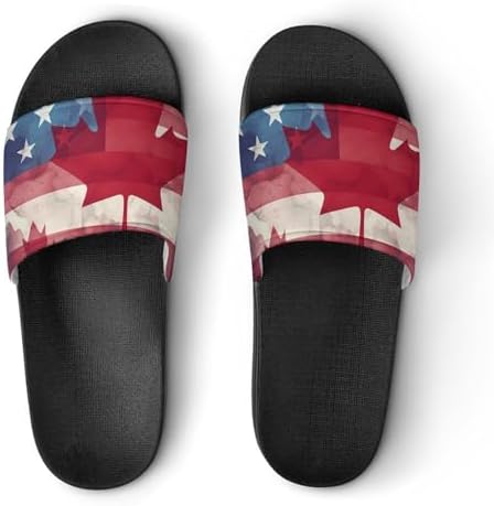 Vintage U.S. and Canada Flag House Sandals Non Slip Slippers Quick Drying Bathroom Shower Shoes for Women Men