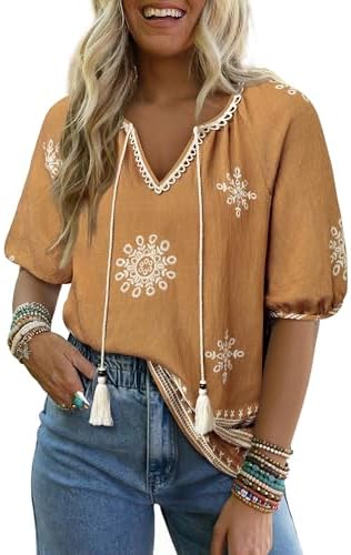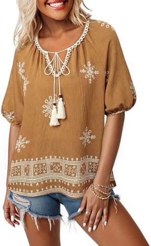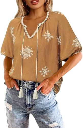 Vivilli Summer Outfits for Women V Neck Short Sleeve Bohemian Shirts Boho Tops