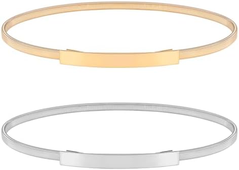 VONMELLI Skinny Metal Cinch Belt for Dress Stretch Thin Waist Belt for Women Gold/Silver