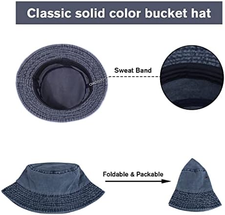 Washed Cotton Bucket Hats Packable Summer Outdoor Cap Travel Beach Sun Hat Plain Colors for Men Women