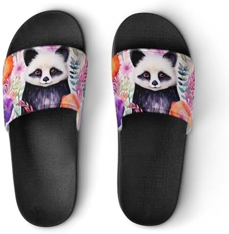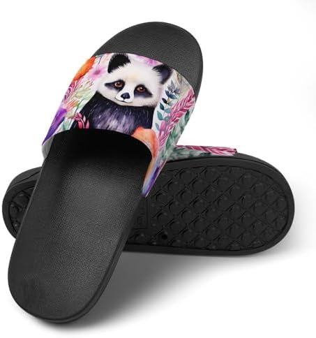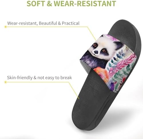 Watercolor Panda Flowers House Sandals Non Slip Slippers Quick Drying Bathroom Shower Shoes for Women Men
