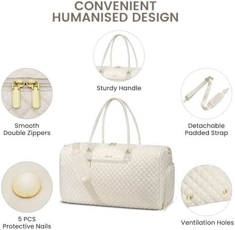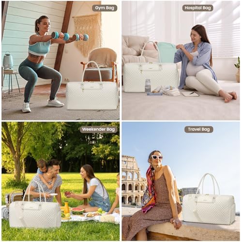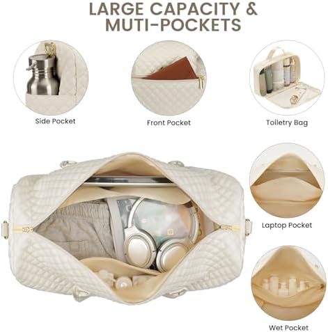 Weekender Travel Duffle Bag for Women: Overnight Bags with Shoe Compartment Carry on Bags for Airplanes with Toiletry Bag Hospital Bag Weekend Yoga Gym Bag with Wet Pocket Travel Duffel Tote Bag Beige
