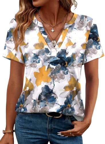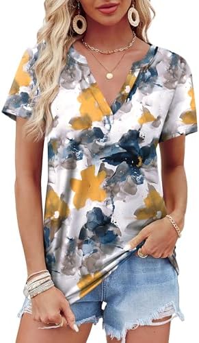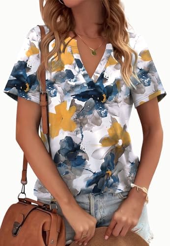 WEESO Womens Tops Summer Short Sleeve V Neck Blouses Business Casual Loose Fit Tshirts Trendy Fashion Outfits
