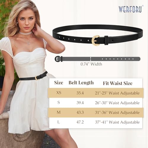 WERFORU 3 Pack Women Skinny Belt Thin Waist Belt for Women Leather Belt with Gold Buckle for Jeans Pants Dress 0.74″ Width