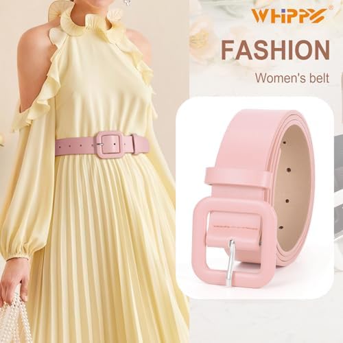 WHIPPY Women Leather Belt Candy Color Fashion Square Buckle Belt Ladies Belt for Jeans Pants Dresses