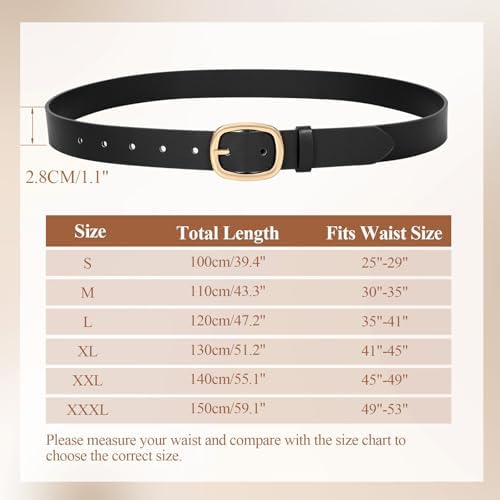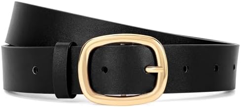 WHIPPY Women Leather Belt Casual Fashion Gold Buckle Leather Waist Belt for Jeans Pants Dresses Chic Ladies Belt