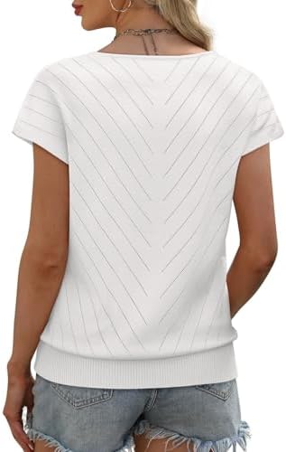 Womens Summer Tops Trendy Casual Short Sleeve Sweater Travel Outfits 2025