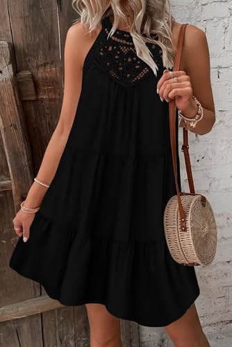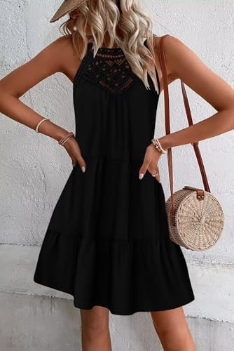 WKIOR Women’s Summer Hollow Out Halter Sleeveless Dresses Loose ALine Mini Dress
