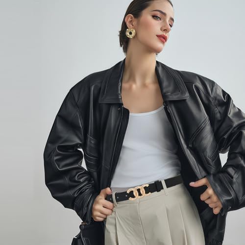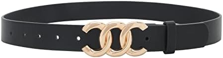 Women Belt for Jeans Dress Cinch Waist Belt for Ladies Faux Leather Belt with Gold Buckle