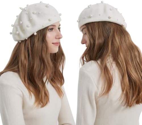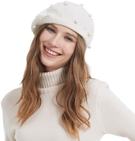 Women Beret Pearl Elegant Sweet Artist French Style Beret Beanie Cap-6Women Beret Pearl Elegant Sweet Artist French Style Beret Beanie Cap-6