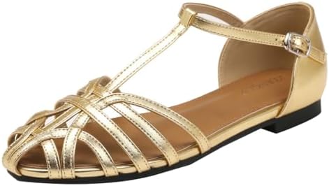 Women’s Closed Toe Flat Sandals Trendy Strappy Gladiator Shoes with Ankle Strap Boho Dressy Summer Sandals 2025