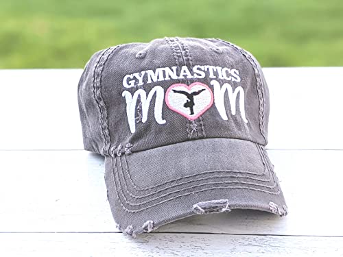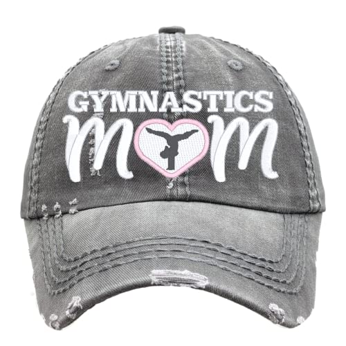 Women’s Gymnastics Mom Hat, Baseball or High Ponytail Cap, Cute Meet Spirit Wear, Custom Embroidered Colors, Heart Shape Gift Clothing Present