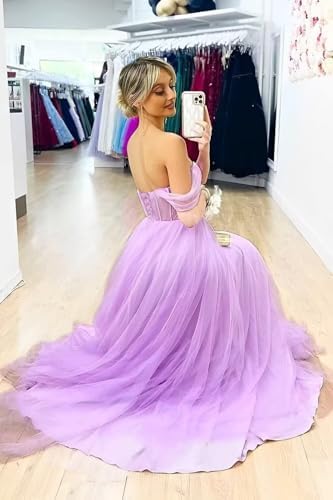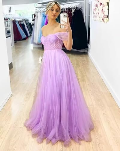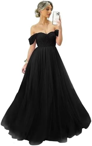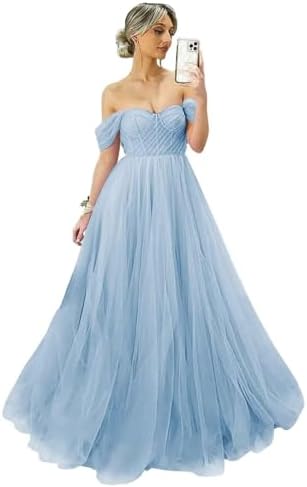 Women’s Off Shoulder Tulle Prom Dresses Long Sweetheart Neckline Backless Formal Party Evening Gowns