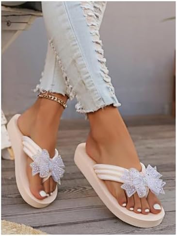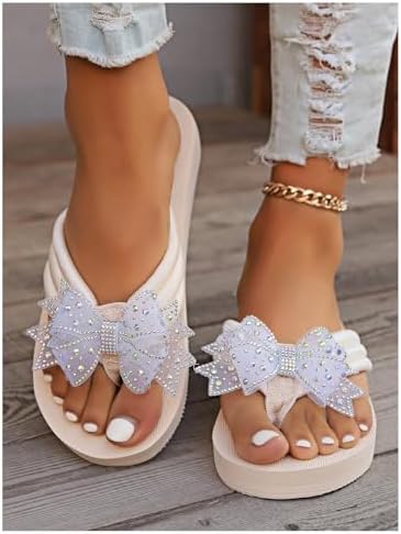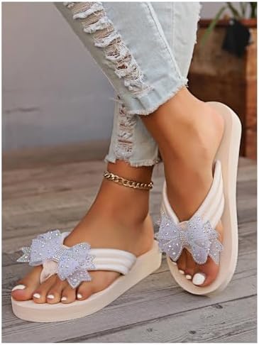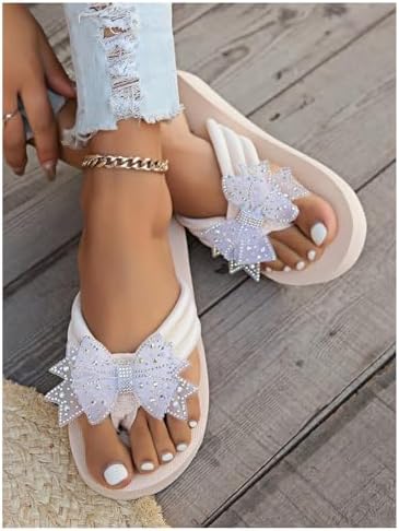 Women’s Rhinestone Bow Thong Sandals Toe Post Open Toe Dressy Flip Flop Sandals