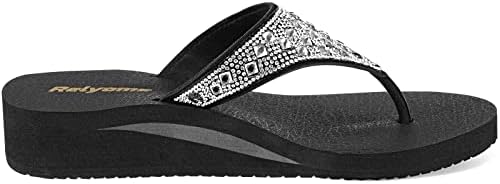 Womens Rhinestones Flip Flops Arch Support Mid Platform Bling Comfortable Flip-flops Jewel Dressy Thong Sandals