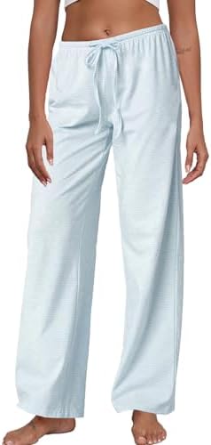 Cotton pajama pants for women features elastic drawstring and low rise waist,two side pockets,straight leg design,casual style,loose fit,great for sleeping pants or lounge outfits