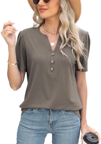 Summer Tops for Women Puff Sleeve Blouses V Neck Tunic Fashion Summer Outfits