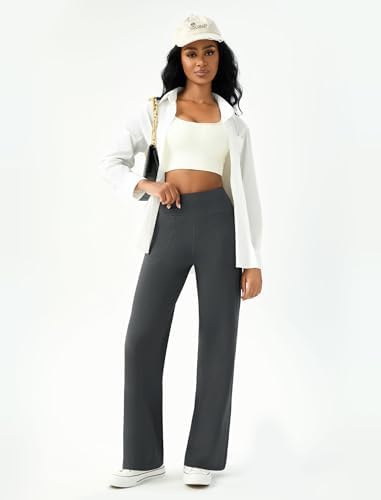 Womens Wide Leg Yoga Pants Casual Work Dress Pants Lounge Sweatpants High Waist Comfy Loose Trousers with Pockets