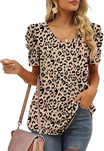 Floral Tops for Women Puff Sleeve V Neck T Shirts Casual Dressy Loose Fitting