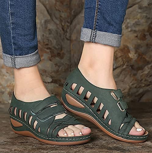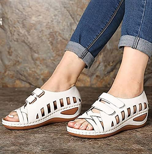 XWCG Womens Wedge Platform Sandals Comfort PU Leather Casual Summer Open Toe Platform Sandals Comfort Adjustable Summer Casual Beach Shoes,Brown,39