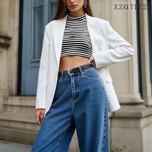 XZQTIVE Casual Leather Belt for Women Fashion Ladies Waist Dress Belt for Jeans Pants with Silver Buckle